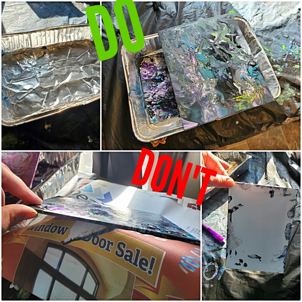 Also make sure your putting your marvelous creation on something it WON’T STICK TO. I knew better and still did it. 🙈 So learn from my mistake and place something smaller than your canvas yet sturdy under your painting like a small box or rest it on a foil baking tin that you can pull it right off of.
